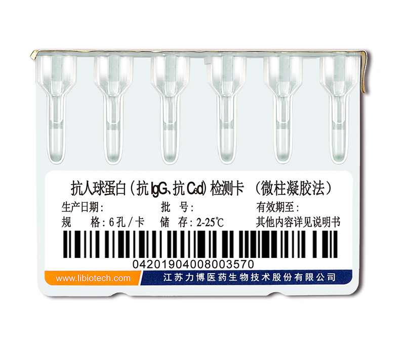 抗人球蛋白(抗IgG、抗C3d)檢測卡(微柱凝膠法)